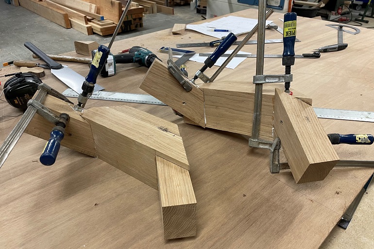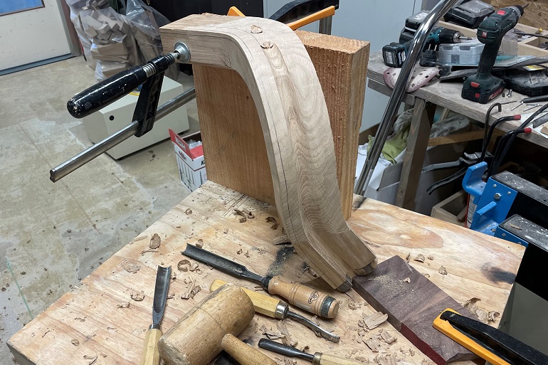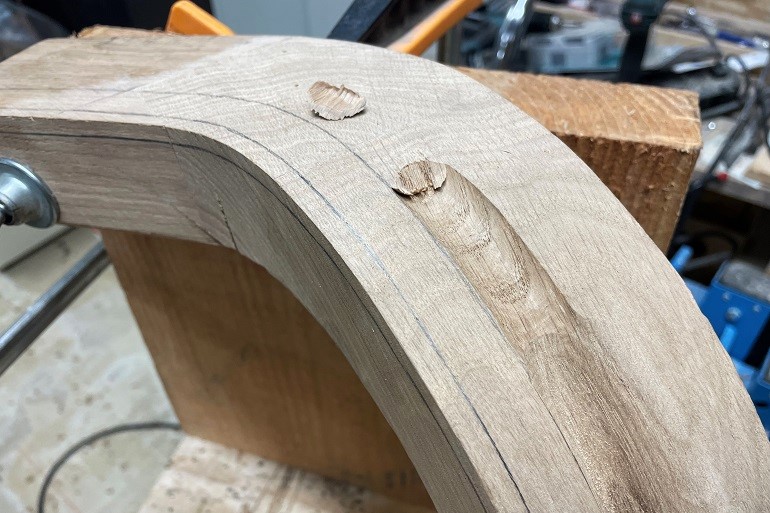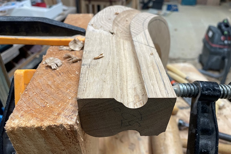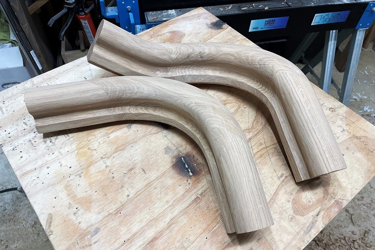 Nieuw kromstukken sleutelgat trapleuning op maat. Nieuw kromstukken sleutelgat trapleuning op maat. Wrongen en bochten maken met de hand op maat. Trapleuning kromstuk maken op maat. Handgemaakte kromstukken op bestelling. Kromstuk maken beeldhouwen. Krom en wrong beeldhouwen voor klassieke leuning.